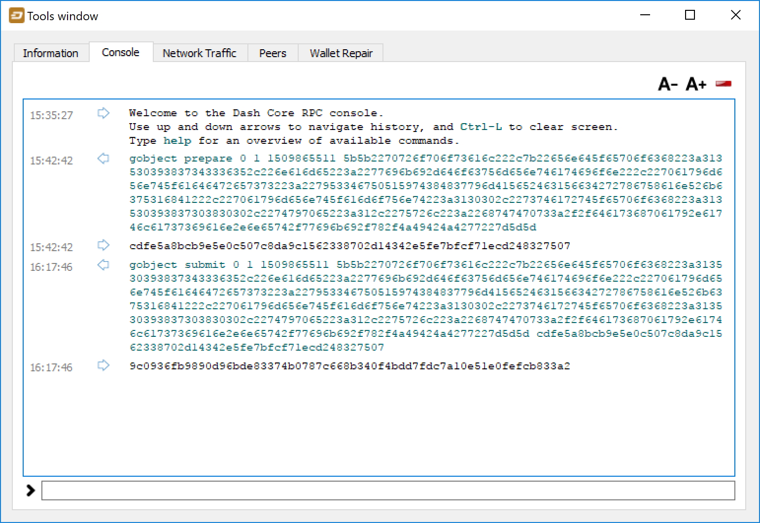 Dash Core Wallet Console#