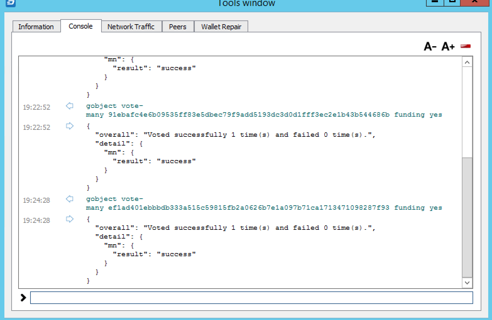 recommended), you can vote manually from Window > Console, or