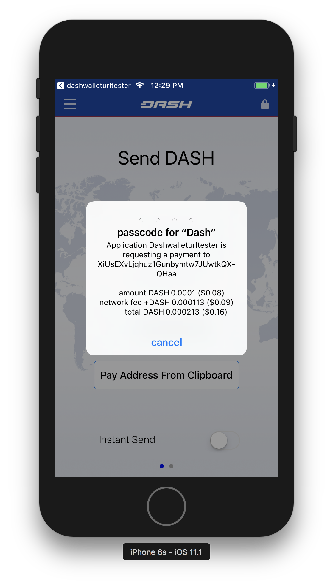 If the user enters the correct passcode, then the transaction is sent and the user is returned to the sender app following the callback URL.