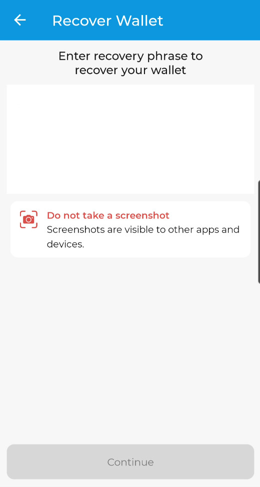 Restoring a 12-word recovery phrase using Dash wallet for Android