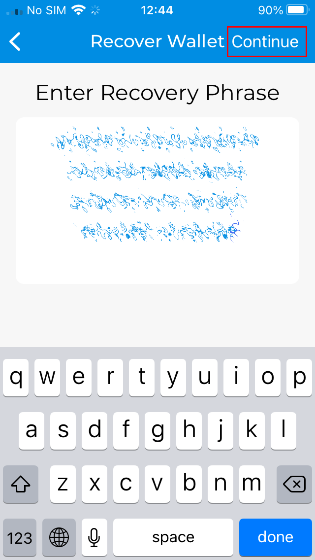 Restoring a 12-word recovery phrase using Dash wallet for iOS